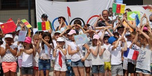 A Noyal Châtillon, 200 élèves ont vécu la Journée Olympique avec au programme : défilé, montée du drapeau, serment des ahlètes, arrivée de la flamme, ateliers sportifs et ateliers autour des valeurs de l’Olympisme menés de concert avec le CROS Bretagne