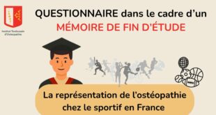Bonjour 👋 Je réalise actuellement mon mémoire de fin d’études en ostéopathie, portant sur la représentation de l’ostéopathie chez le sportif en France. 🎯 Objectif : mieux comprendre comment les sportifs perçoivent l’ostéopathie — son rôle, son intérêt et la place qu’elle occupe dans leur pratique sportive, quel que soit leur niveau (loisir, amateur ou compétition). 📝 Le questionnaire s’adresse à tous les sportifs et …